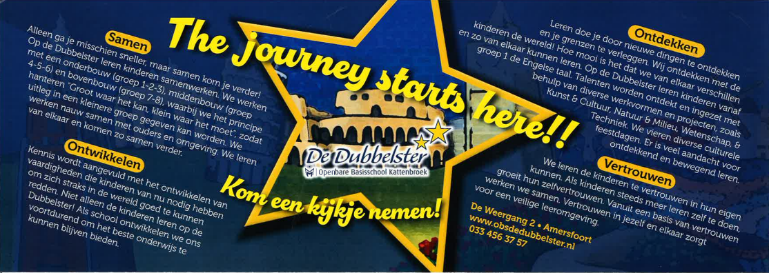 Leren doe je door nieuwe dingen te ontdekken. De samenleving houdt niet op bij de grens van het lokaal, de school, de stad of ons land; wij ontdekken met de kinderen de wereld. We werken samen met scholen in het buitenland, organiseren diverse excursies. Om internationaal goed te kunnen communiceren leren kinderen op de Dubbelster vanaf groep 1 de Engelse taal. Hiervoor voeren wij het VVTO (vroegtijdig vreemde talen onderwijs) keurmerk, in samenwerking met Early Bird.