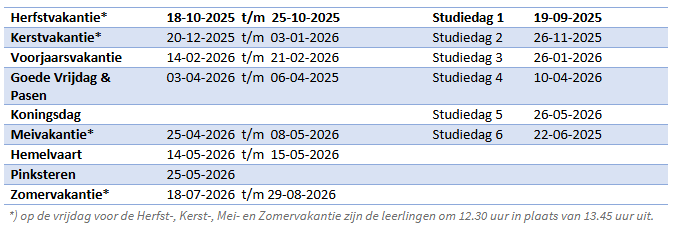 Vakantie en Studiedagen 2025-2026
